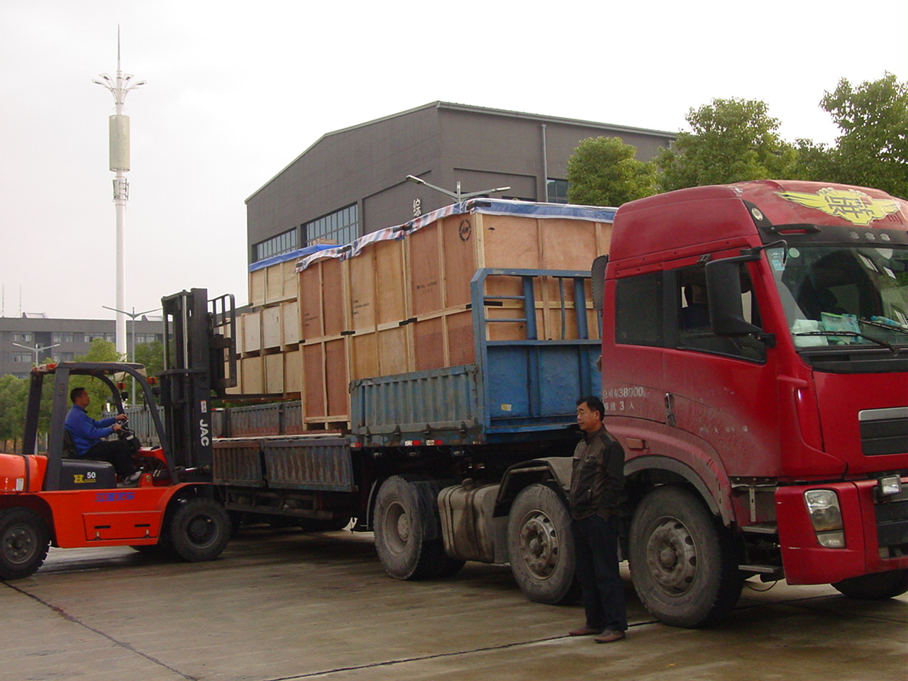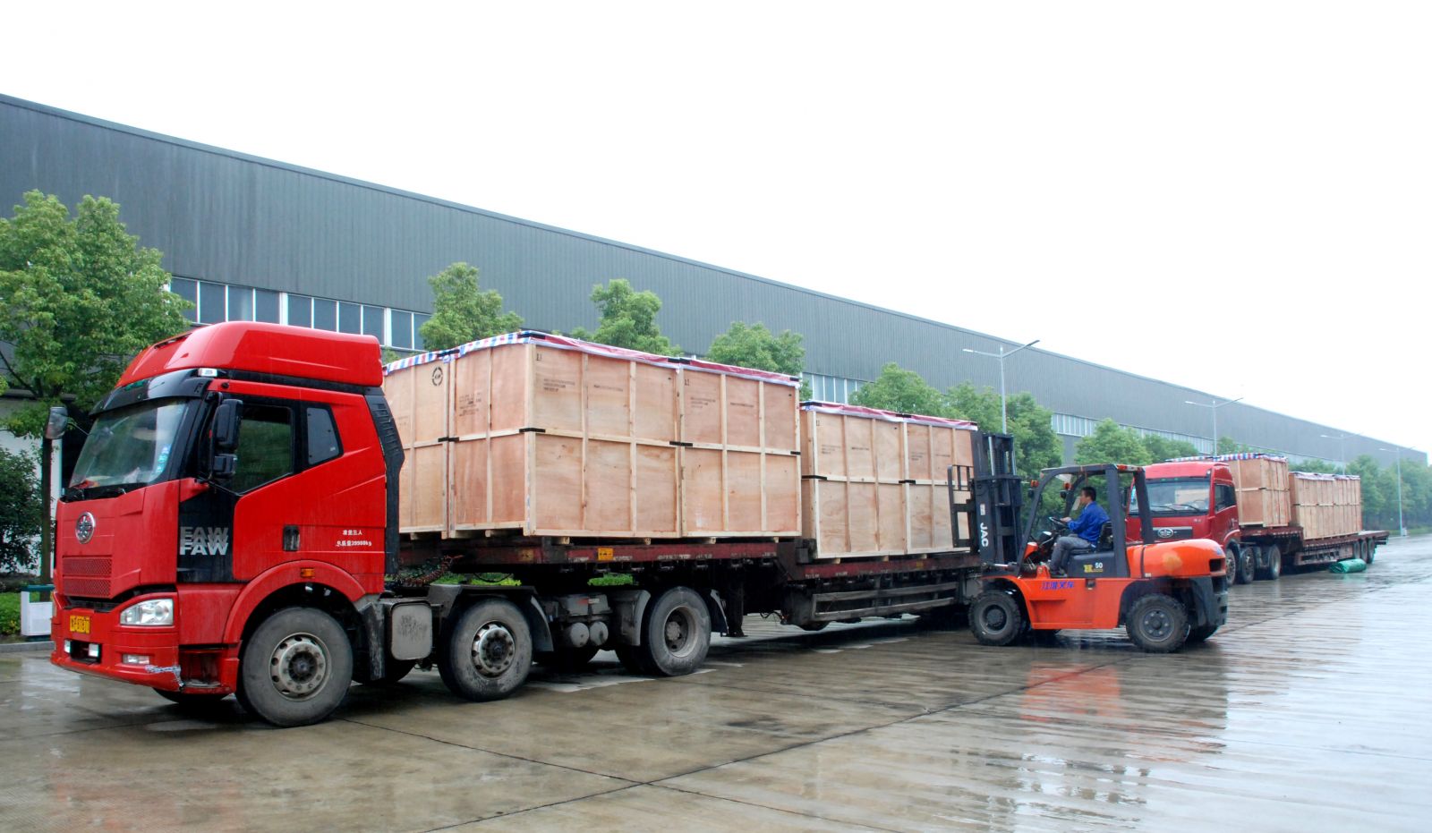 图为m88公司生产的69台高档并条机,整装待发,现已分期分批出口越南。