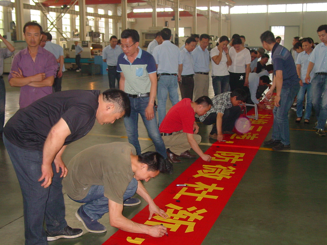 图为6月报12日,该公司组织车间员工进行安全生产承诺签名活动的场景。