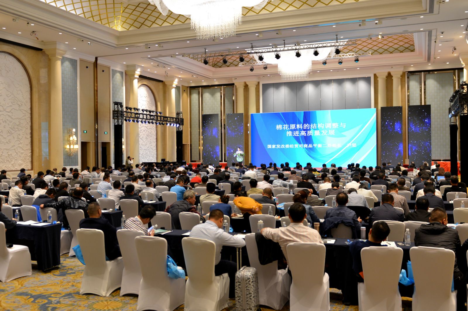 工业和信息化部消费品工业司副司长曹学军,中国纺织工业联合会副会长、中国化学纤维工业协会会长端小平,国家发改委经贸司商品平衡二处处长尹坚,纺织产业经济研究院副院长赵明霞等领导和嘉宾从“棉纺织行业的现状及面临的挑战”、“棉花和化纤关系”、“中美贸易战对纺织行业的影响和应对措施”、“企业所关心的棉花配额问题”诸方面进行了权威解读。