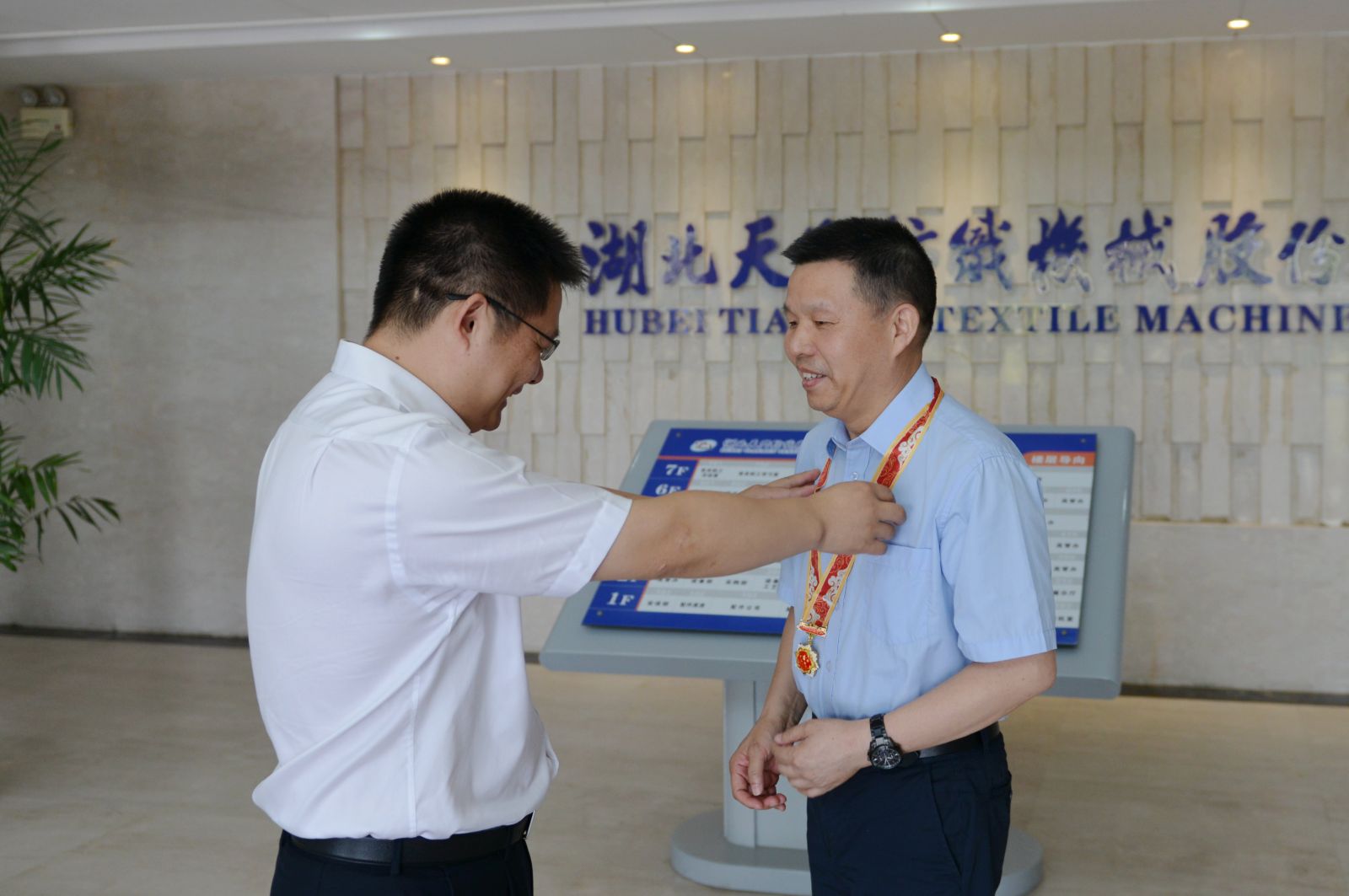 天门市委副书记雷华为沈方勇董事长佩戴纪念章