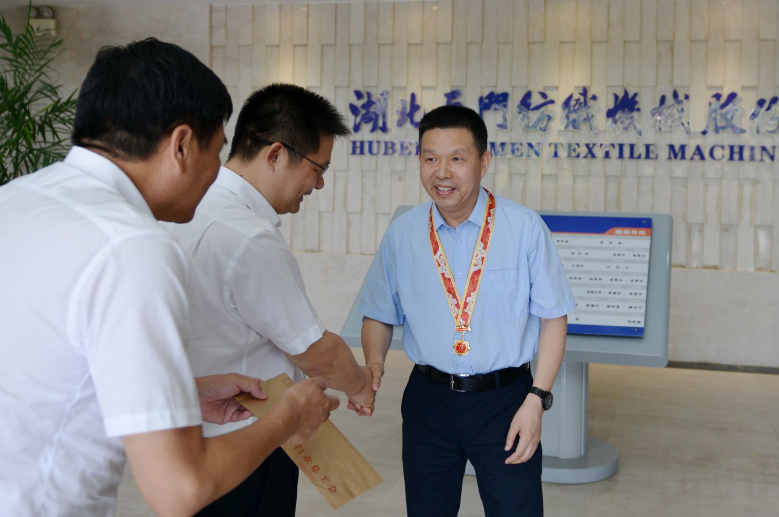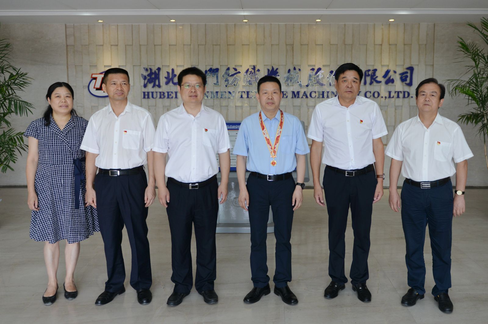 9月30日上午,天门市委、市政府及总工会相关领导来到m88,为董事长沈方勇颁发由中共中央、国务院、中央军委授予的“庆祝中华人民共和国七十周年”纪念章,并与沈方勇董事长亲切合影留念。