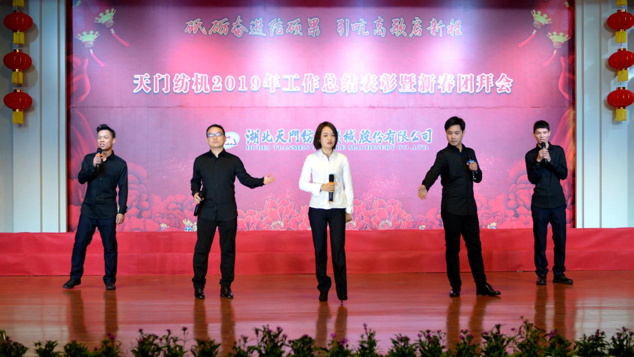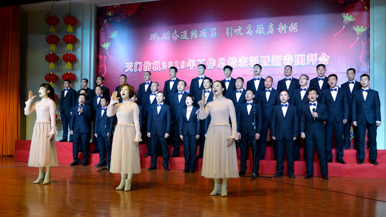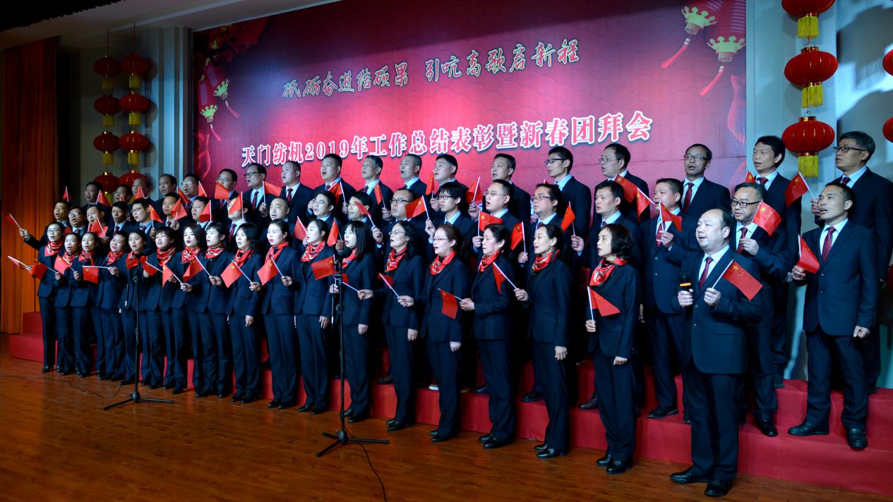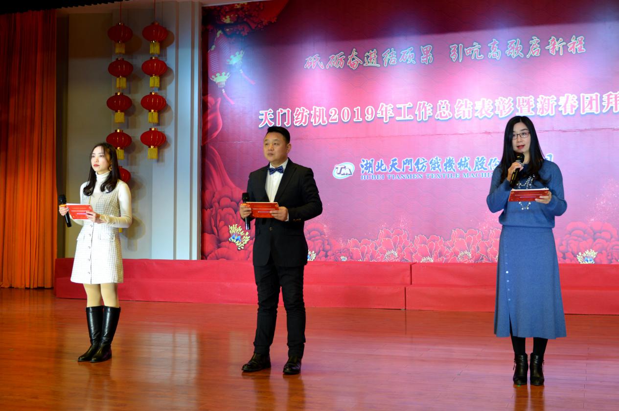 2020年1月21日下午,m88综合楼多功能厅张灯结彩、暖流融融,一场主题为“砥砺奋进结硕果、引吭高歌启新程”的年度总结表彰暨新春团拜会在这里举行,400多名员工身着公司新佩发的西服套装,精神奕奕地走进会场。13:00整,三位主持人靓妆登场,宣布2019年度总结表彰暨新春团拜会开始。