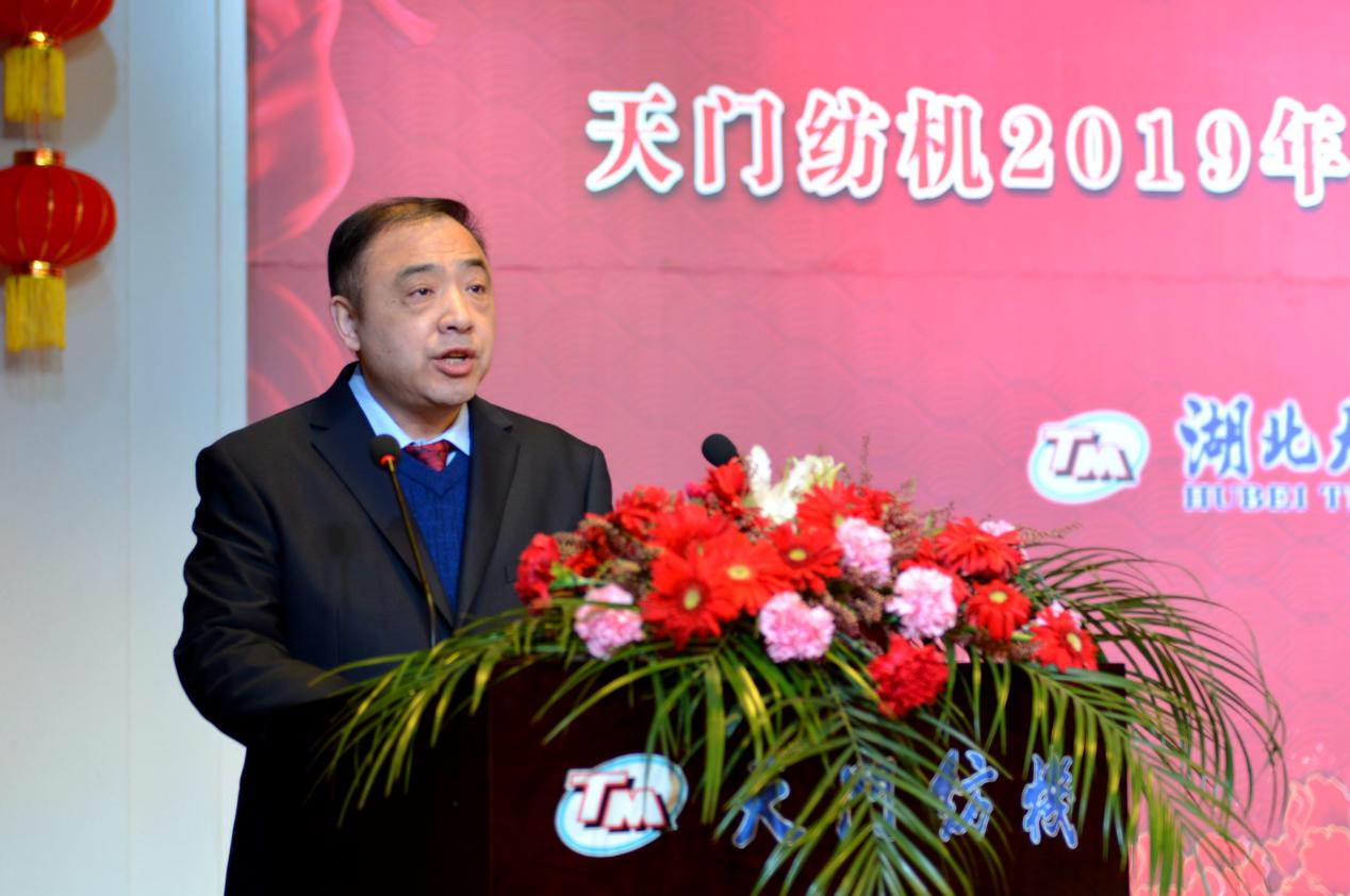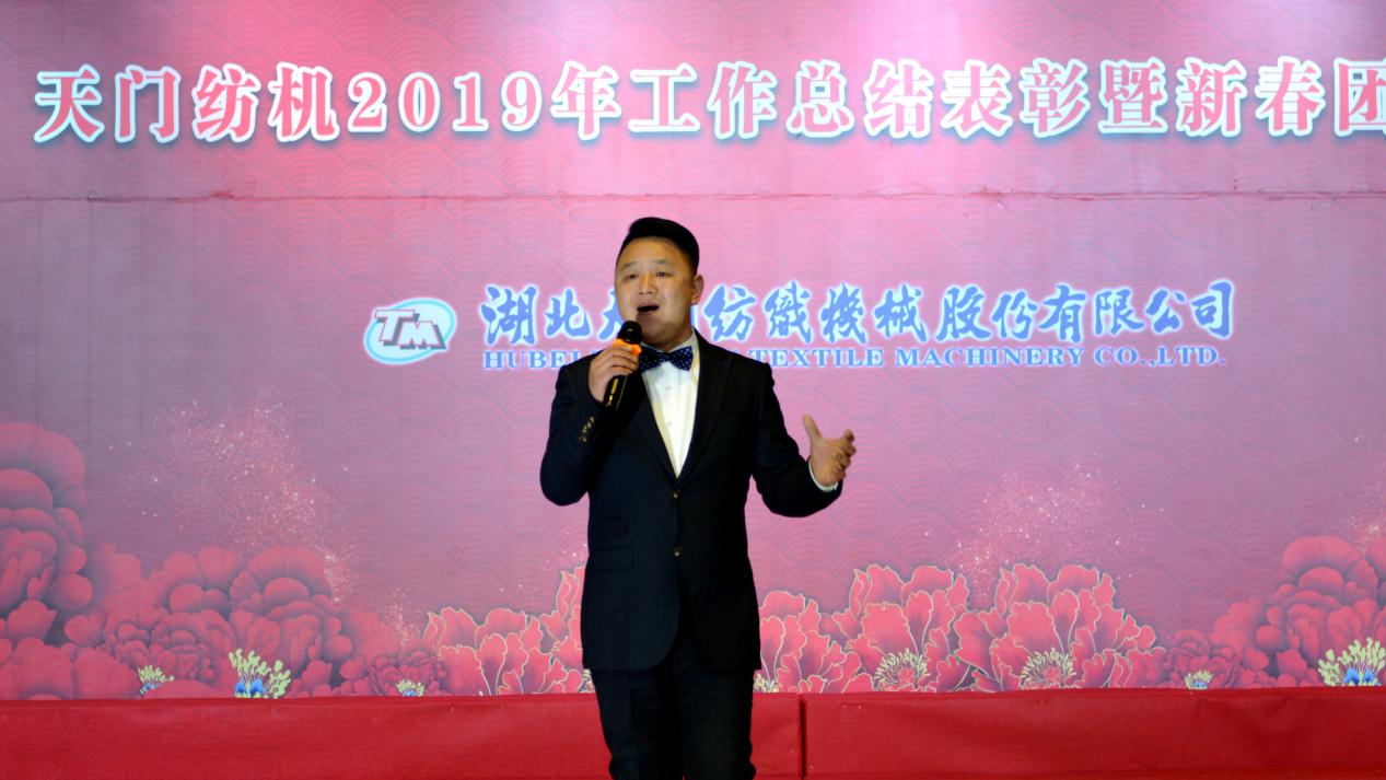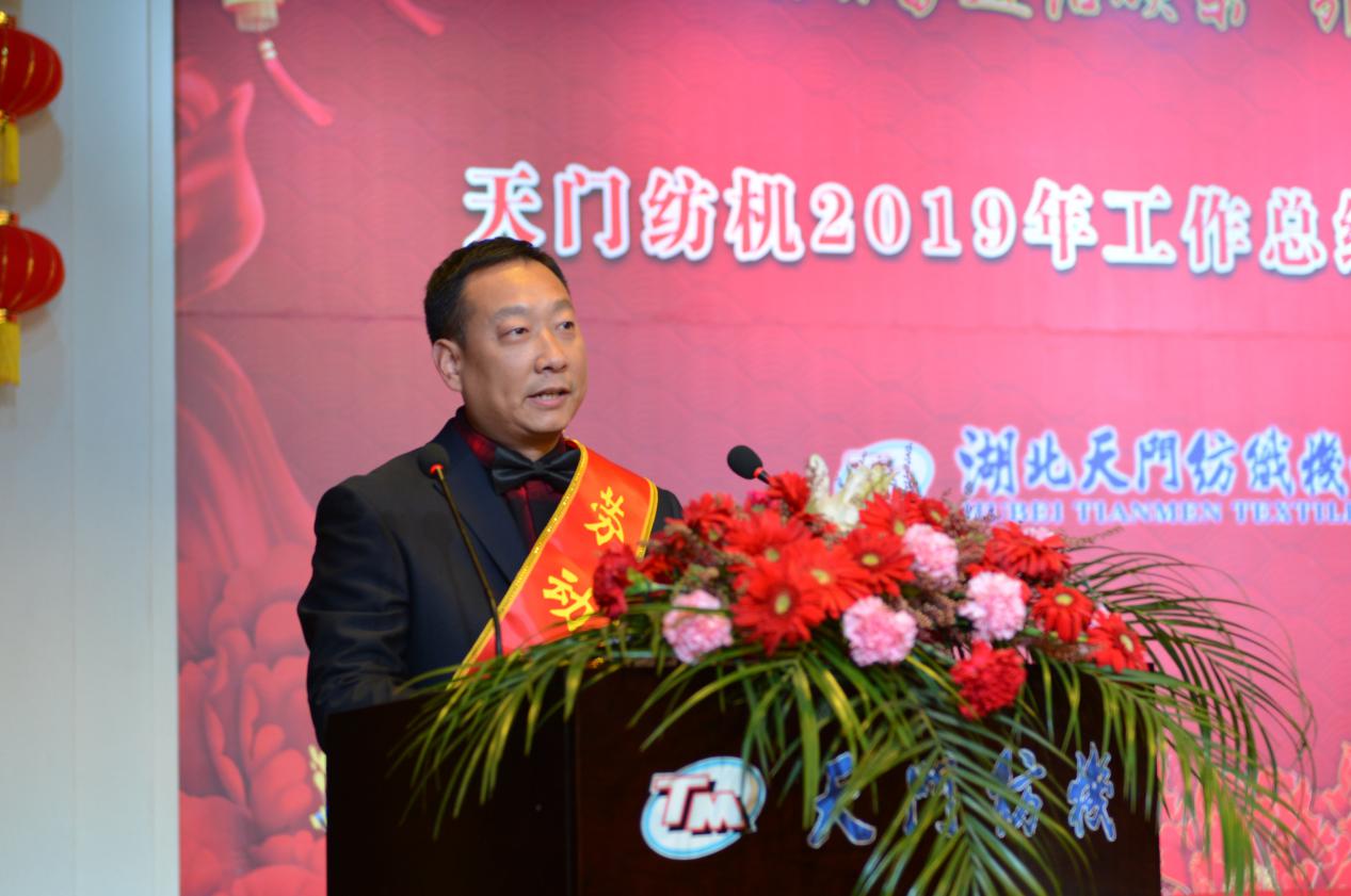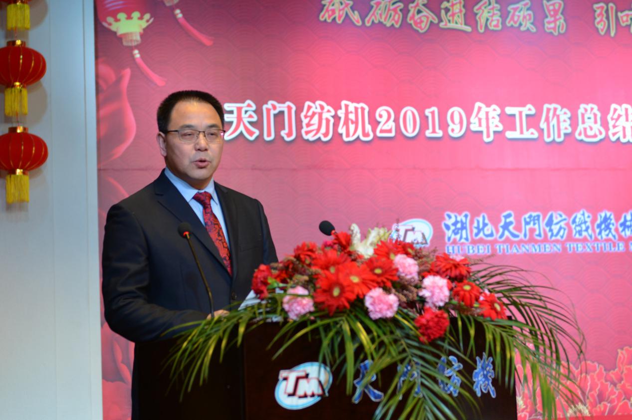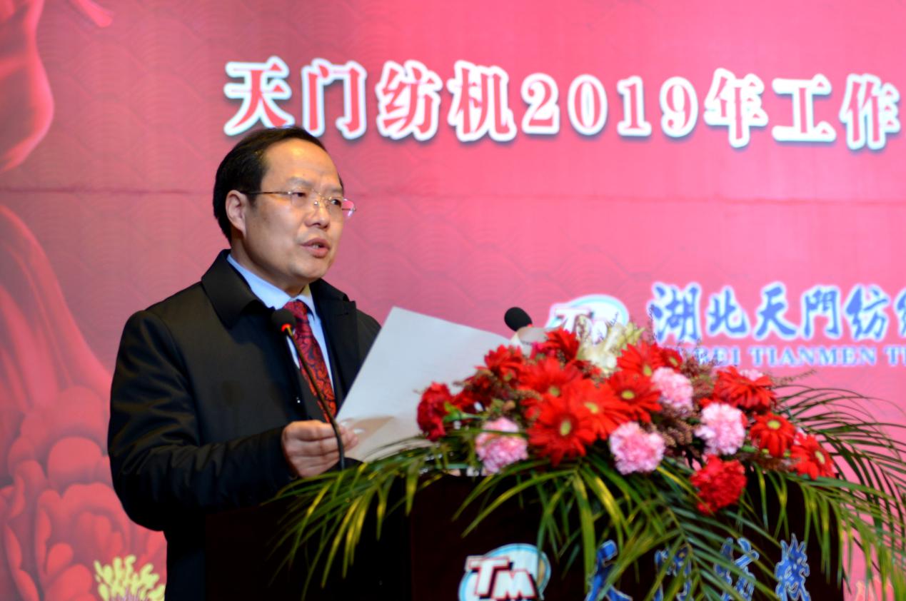 总经理焦伦进作2019年工作总结报告。他在总结2019年工作成绩时自豪地说:公司面对行业经济下行和贸易壁垒的双重压力,通过技术改造与技术创新同步推进和产品开发与市场开拓两线决战,取得了生产经营运行良好、市场份额稳中有增、品牌效应逐渐突显、行业地位全面提升的优异成绩,销售额比去年增长9.56%,入库税金比去年增长17.5%,利润比去年增长47.5%。在大多数纺织企业经营艰难的情况下,实现逆势发展,经济效益再创新高。