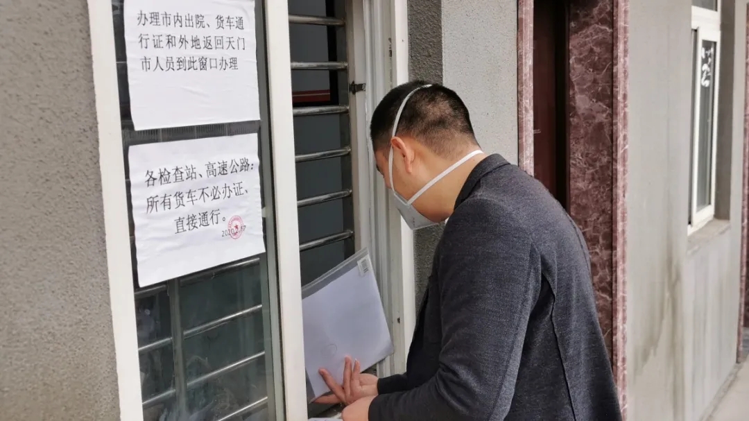 2月24日一大早,公司办小车司机王克文带着天门市新冠病毒疫情防控指挥部批复文件来到防控指挥部交通组办理车辆及人员通行证