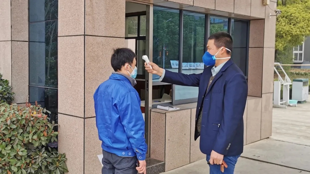 公司在大门设置了防控岗,对进出人员做好消毒、体温测量记录等防护措施