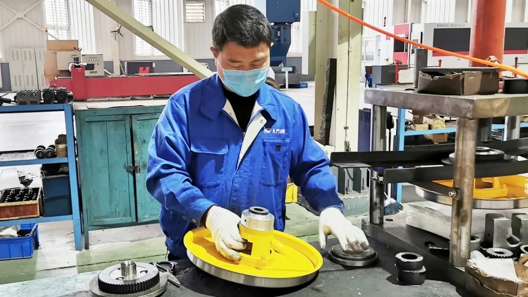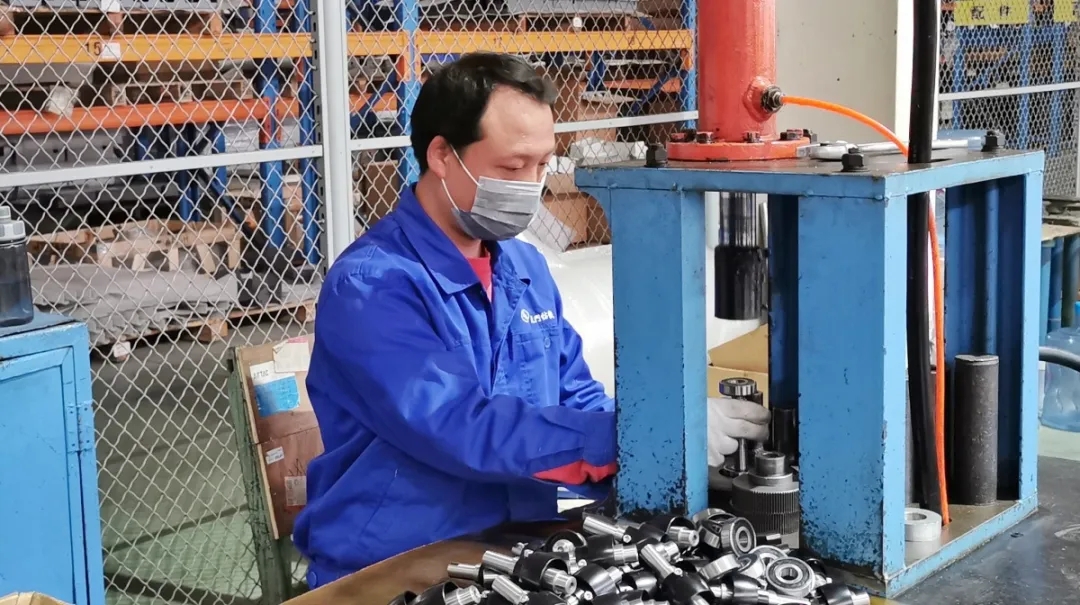 装配工曾碧辉抓紧发货需要配套的轴承组装