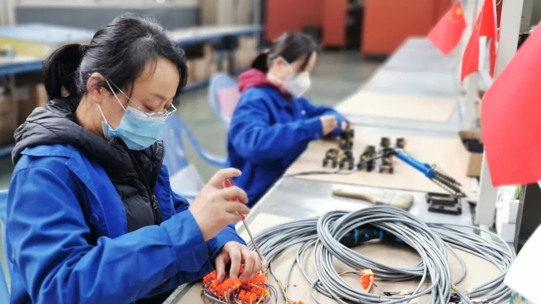 纺电员工李莉、徐艳华根据发货型号机型进行电器零部件配套整理
