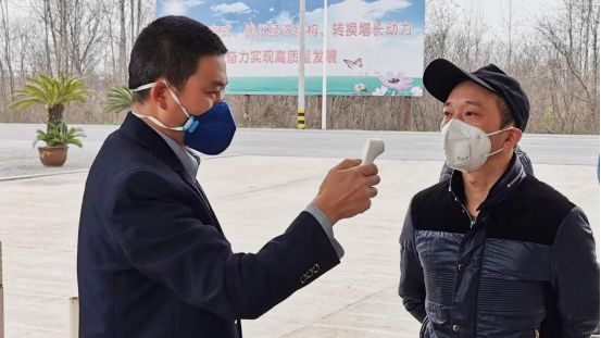 组织保发货期间,公司在大门设置了防控岗,对进出人员做好消毒、体温测量记录等防护措施