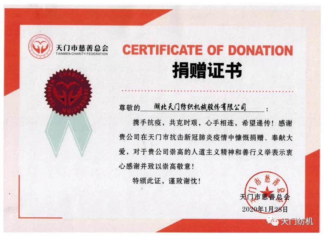 2016年,天门全市遭遇百年一遇的特大洪涝灾害,人民生命财产受到严重威胁。m88积极参与政府组织的抗洪救灾慰问活动,为奋战在一线的防汛抗灾人员送去食品、药品和救灾物资,并捐赠100万元抗洪救灾款。