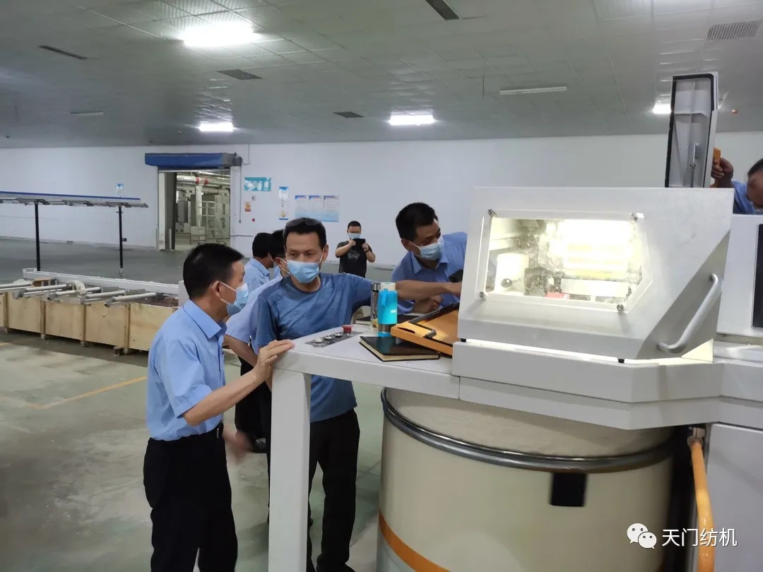 m88“全球首款超大卷装双眼高速自调匀整并条机”—TM19自6月份上海展会首次亮相后,已布点在不同客户处并线试纺3月有余。为了解该机并线后的真实使用情况,9月18日,m88董事长沈方勇、总经理焦伦进带领技术研发人员组成的TM19评估组,专程赴卓尔天龙纺织公司,现场考察实际使用情况,征求客户意见建议。