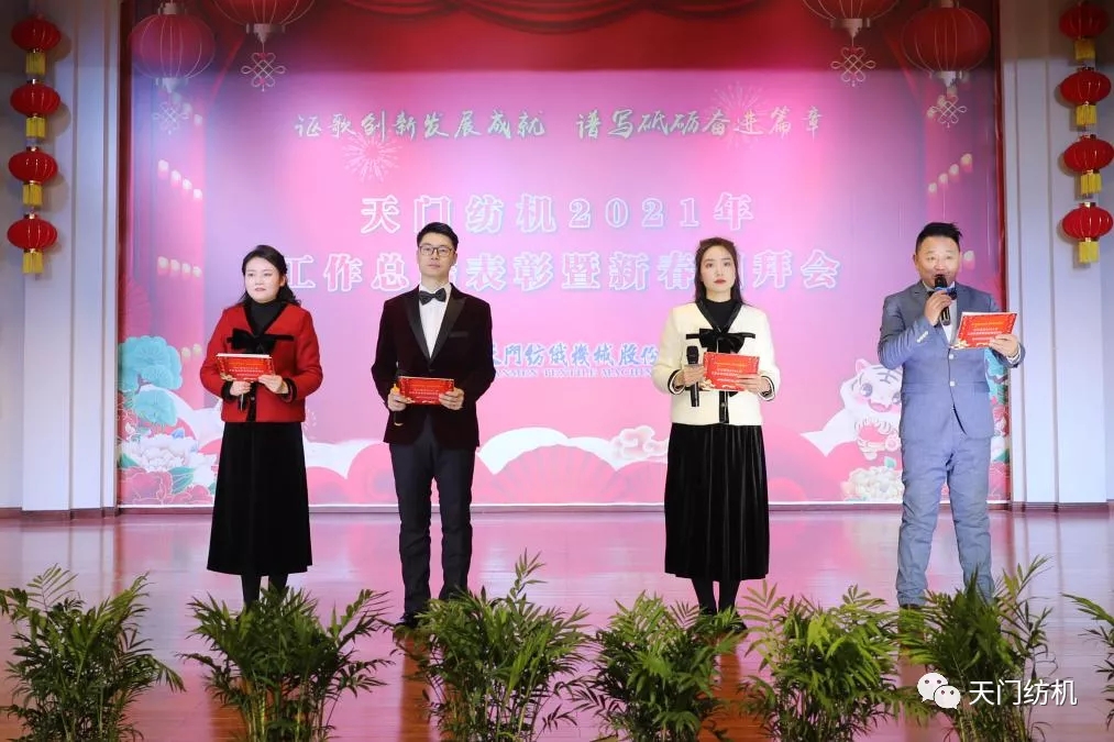 总结表彰结束后,上演了精彩纷呈的团拜会文艺表演。四位主持人闪亮登台,公司各部室、车间表演了合唱、独唱、小品、舞蹈、诗朗诵等十多个丰富多彩的文艺节目。