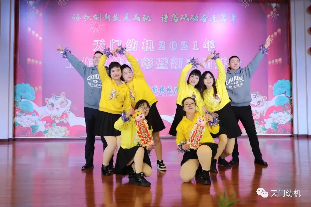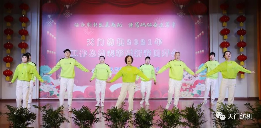 板件车间的暖场热舞《秒针》,活力四射,热烈奔放,舞出了纺机人虎虎生威的虎年激情。