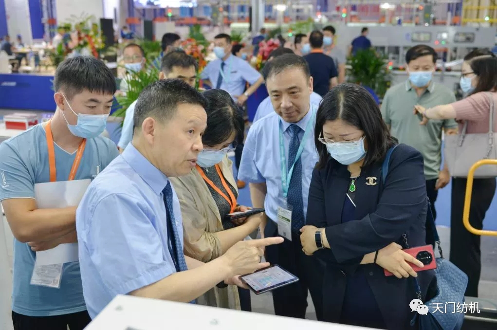 2021年6月12日,在上海国际纺机展上m88举行“开创并条工序全自调匀整新时代”新品发布会,中纺联党委书记高勇使用手持终端为新产品开机
