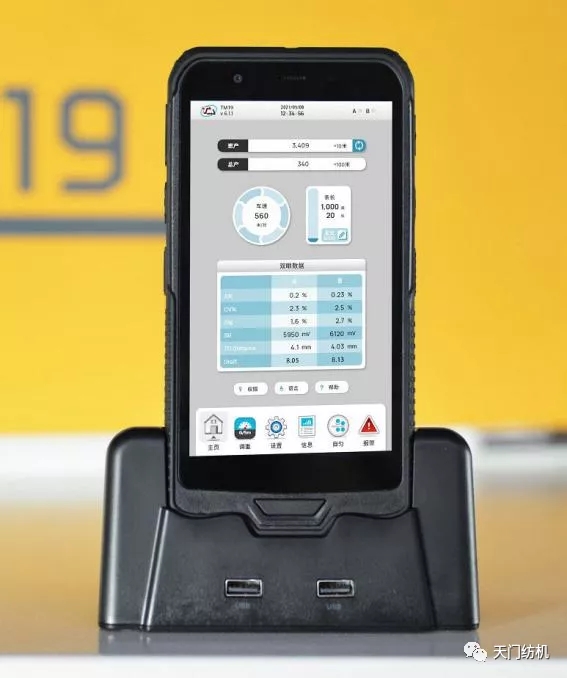 T1系列并条机的手持终端,除了拥有为并条工序量身打造的数据处理能力外,还有交互式的人机界面,具备坚固、耐用、使用寿命长、方便快捷等特点,能适应高温、高湿、粉尘等复杂环境,具有良好的可靠性。
