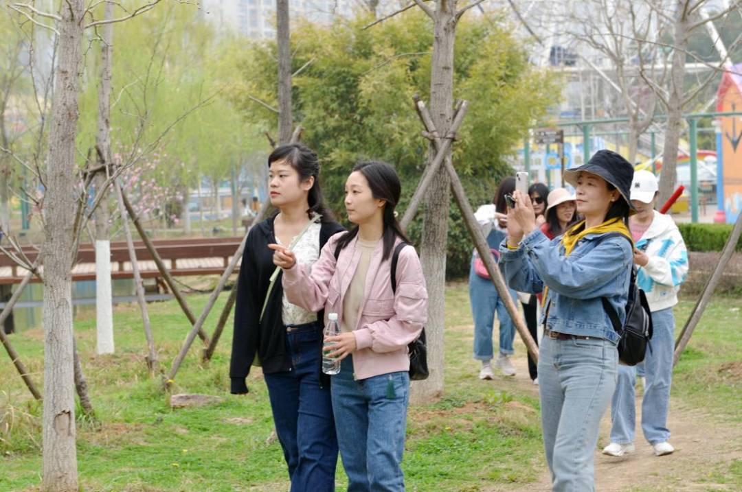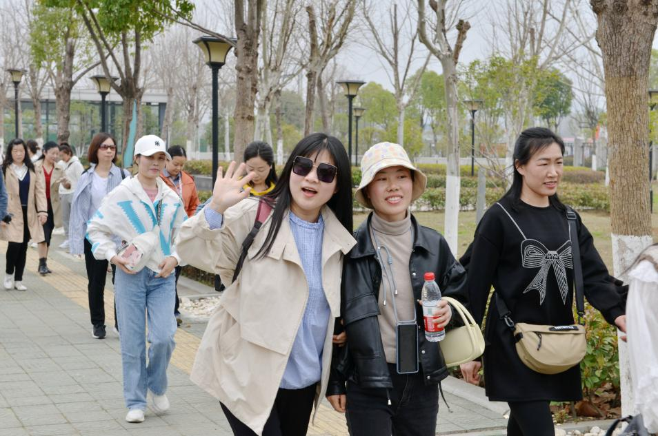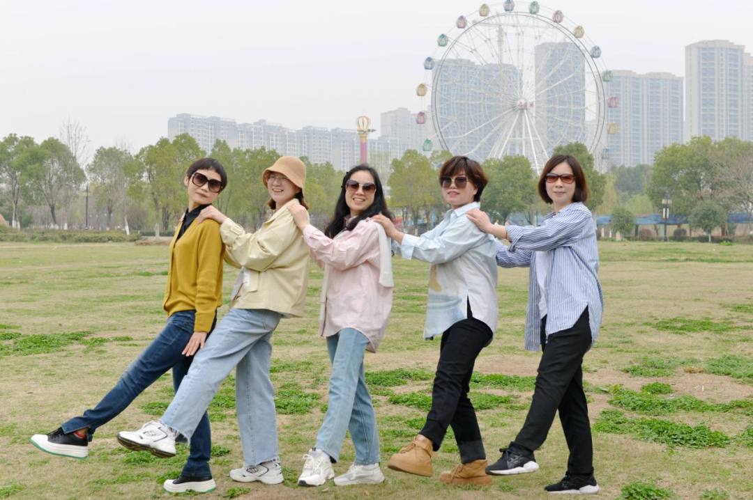 伴随徐徐春风,“娘子军”踏上了旅程。大巴上,大家一起玩游戏,唱车载KTV,一路洋溢着欢声笑语,转眼便抵达第一站——后官湖国家湿地公园。