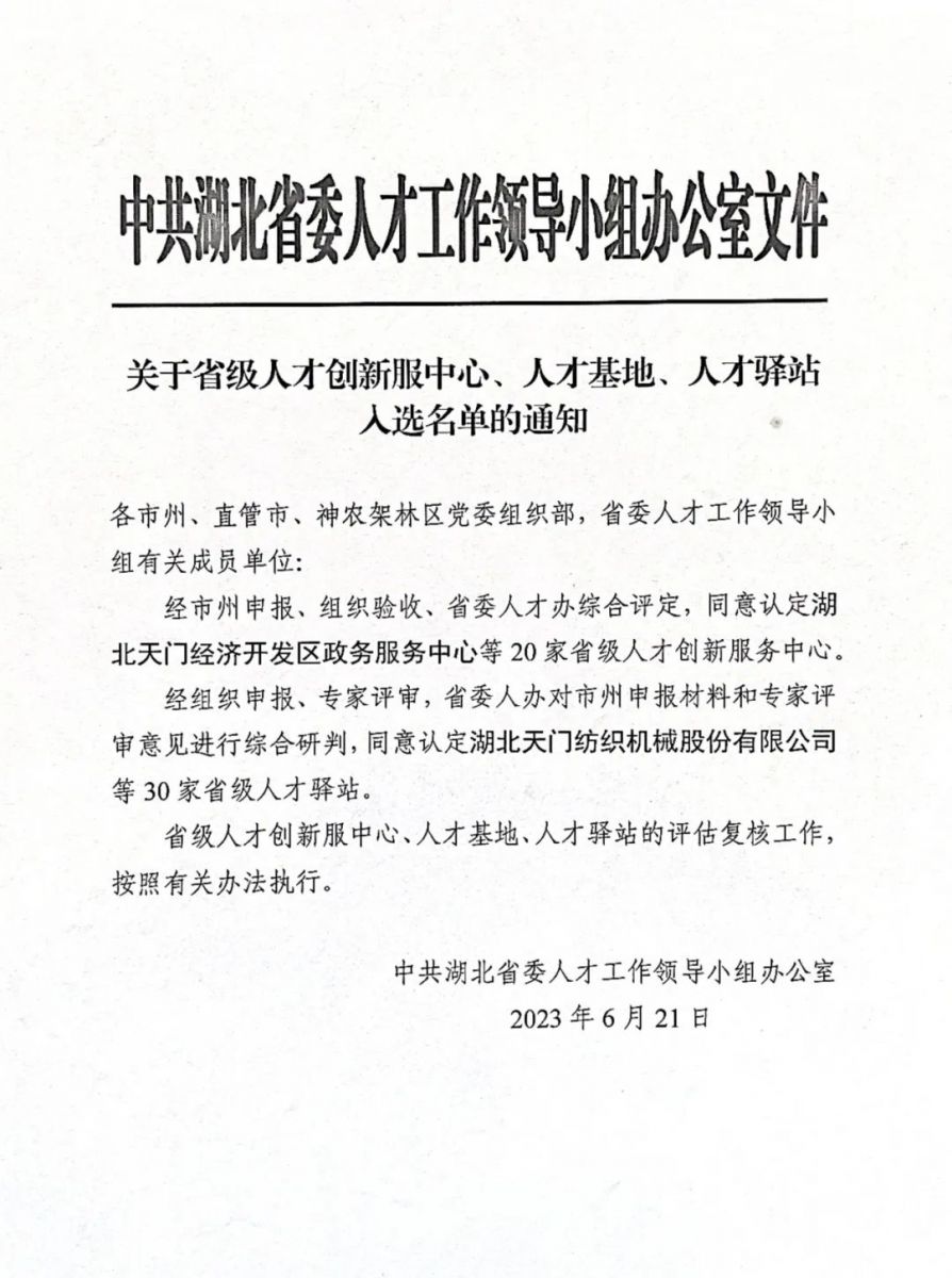 近日,以“英才聚楚 引领先行”为主题的湖北人才周活动在武汉东湖高新区启动。活动由省委组织部(省委人才办)和省委人才工作领导小组成员单位联合主办,启动仪式上,公布了全省首批获评认定的人才创新服务中心、人才基地、人才驿站、院士工作站、卓越工程师实践基地等,并在现场正式授牌。本公司成功入列湖北省首批“人才驿站”名录,荣获湖北省人才驿站牌匾。