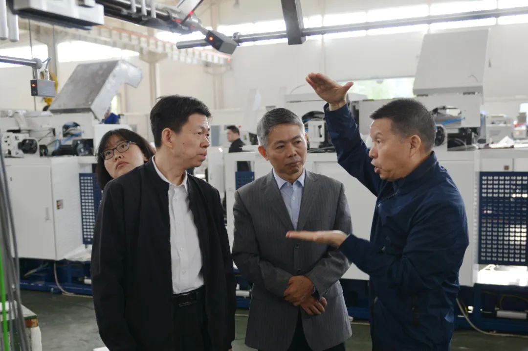 在车间现场,沈方勇董事长向单院长一行介绍了m88目前的生产经营状况、智慧工厂项目建设进展以及近年来科技开发取得的成绩;详细介绍了正在调试并即将赴上海参展的多台全新样机的情况。