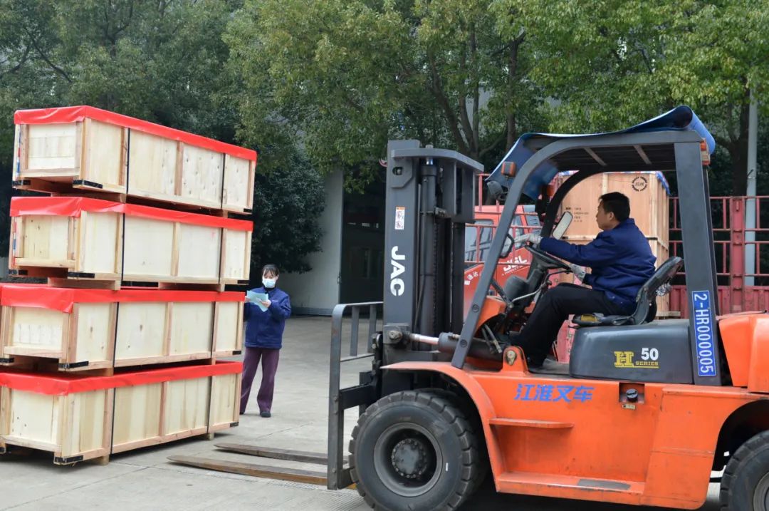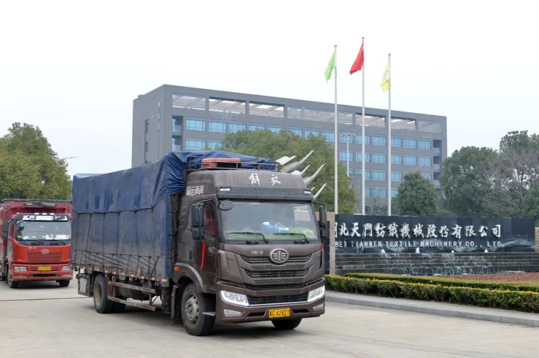 新年以来,公司销售捷报频传,生产车间风劲帆满,为保障用户实现开门红持续发力。当天下午,共有来自江阴富朋纺织、温州佳泰纺织、张家港恒韵纺织、赵县汇通纺织、武强刘艳通纺织、高阳方泰盈纺织等六家客户的订单实现装车发运。