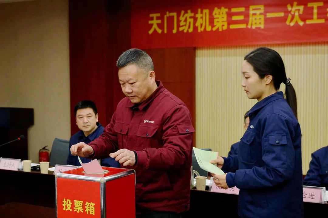 新当选的第三届工会主席李红亮讲话。他表示,工会将以维护职工合法权益为出发点,依法履职,为构建和谐纺机而努力。同时,发挥工会调解和协商作用,促进和谐劳动关系,营造积极向上的工作环境。发挥工会桥梁与纽带作用,推动各项工作顺利实施;组织各种形式的活动,宣传企业的使命、愿景和发展战略,提高员工对公司经营决策的知晓度。