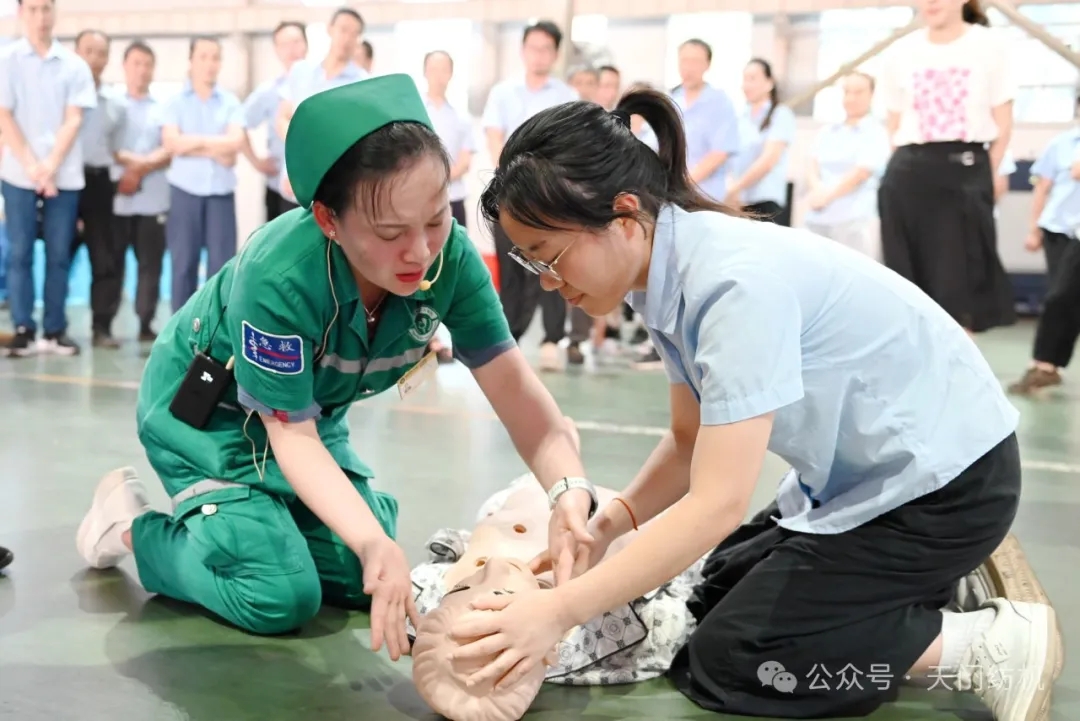 急诊科主管护师代欢欢讲解了心肺复苏、烧伤及烫伤处置等多种急救知识,并亲自上阵,利用心肺复苏训练模拟人为大家演示了心脏急救复苏的操作技能。她的专注、专业与热情投入赢得了阵阵掌声。随后,部分员工在代护师的指导下演练了急救操作,提升了对应急救护的认识及实操能力。