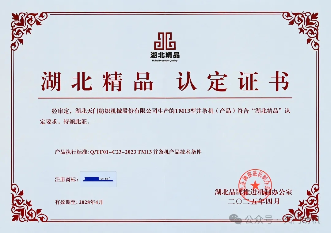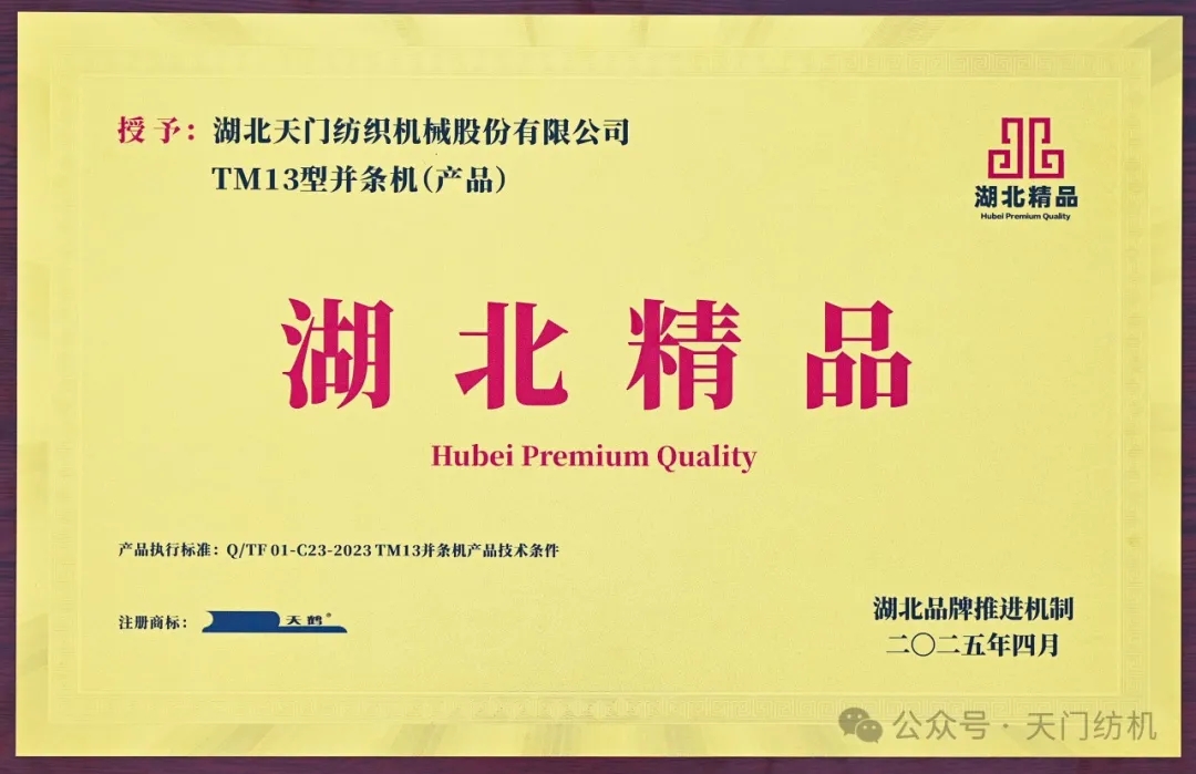 为贯彻落实《湖北省质量强省建设纲要》《建设品牌湖北推动高质量发展行动纲要》有关部署,湖北省品牌推进机制办公室从2023年起,正式启动了“湖北精品”培育认定工作。其中,第二届动员了562家经营主体,有643个(项)产品成功入库培育,最终161 个(项)产品入列“湖北精品”。m88TM13型并条机脱颖而出,傲立榜单。